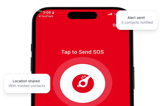 One tap alerts your trusted contacts in an emergency.